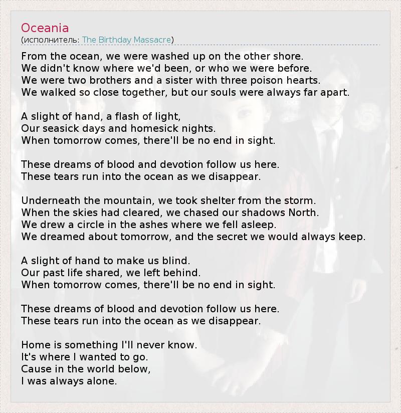 А как ты думаешь, о чем песня "Oceania" ?