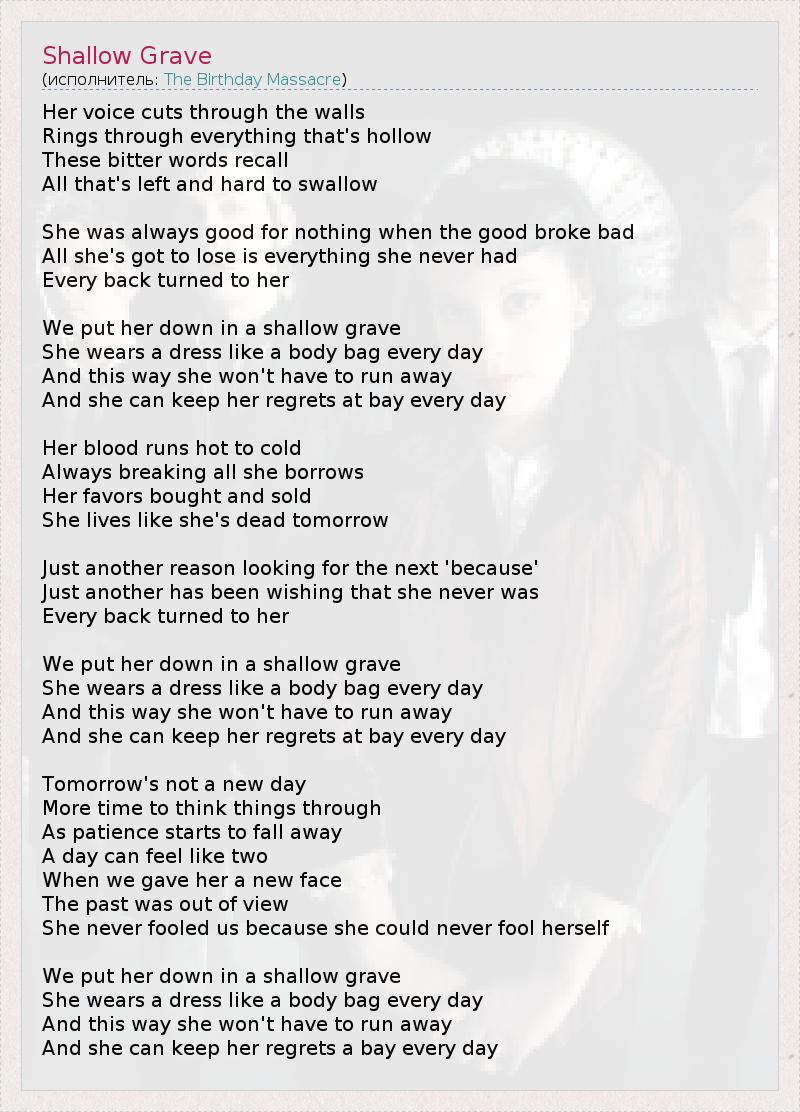 А как ты думаешь, о чем песня "Shallow Grave" ?
