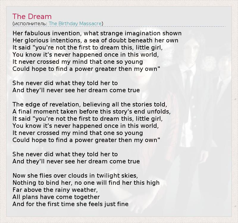 Он гласит: "Ты не первая, кто мечтает об этом, малышка,