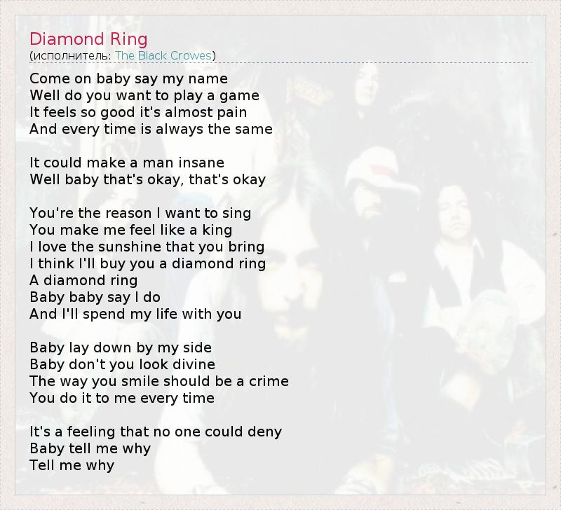 А как ты думаешь, о чем песня "Diamond Ring" ?