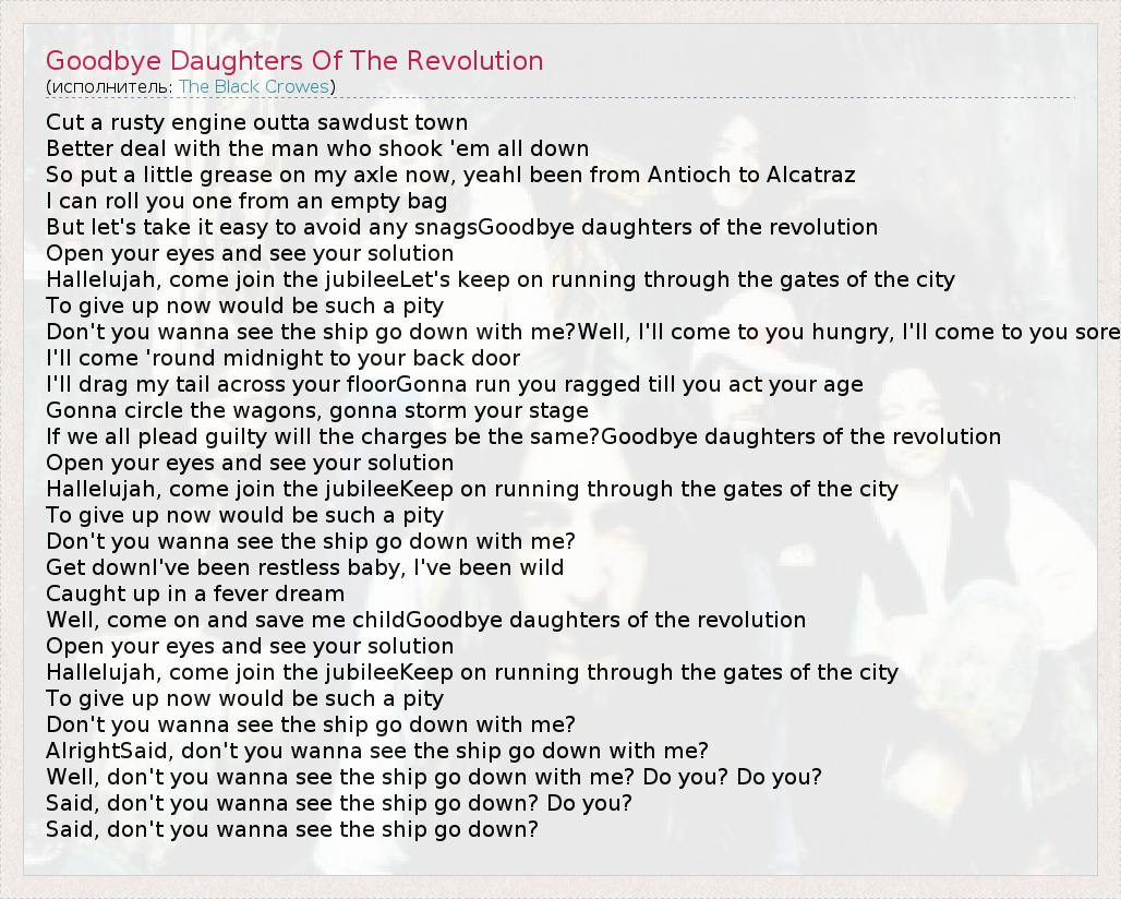 ГлавнаяИсполнителиThe Black CrowesGoodbye Daughters Of The Revolution