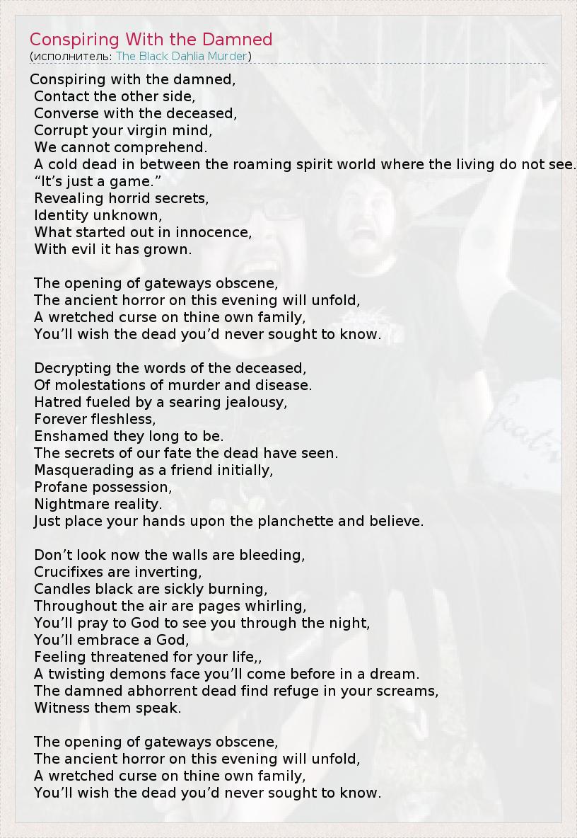 А как ты думаешь, о чем песня "Conspiring With the Damned" ?
