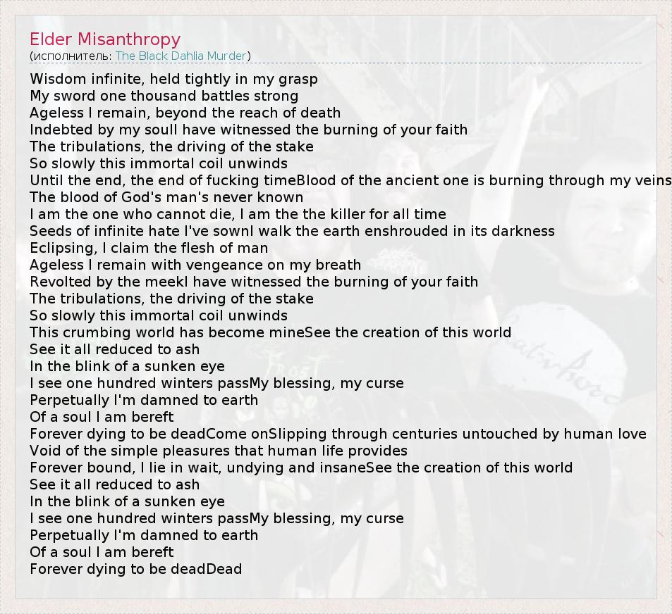 А как ты думаешь, о чем песня "Elder Misanthropy" ?