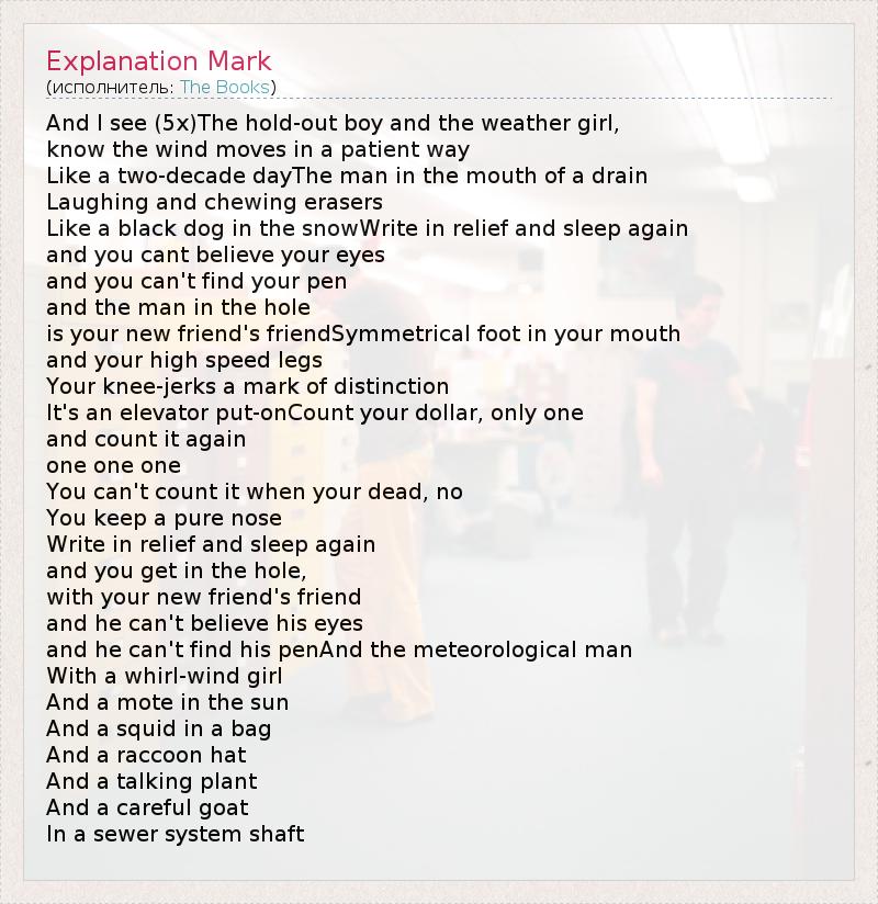А как ты думаешь, о чем песня "Explanation Mark" ?