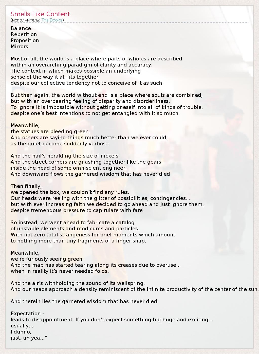 А как ты думаешь, о чем песня "Smells Like Content" ?