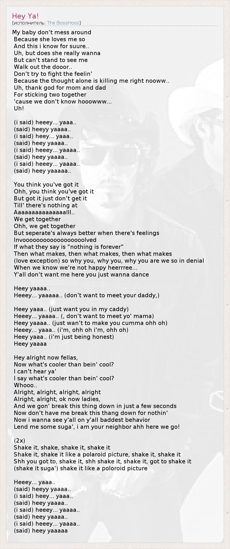 А как ты думаешь, о чем песня "Hey Ya!" ?
