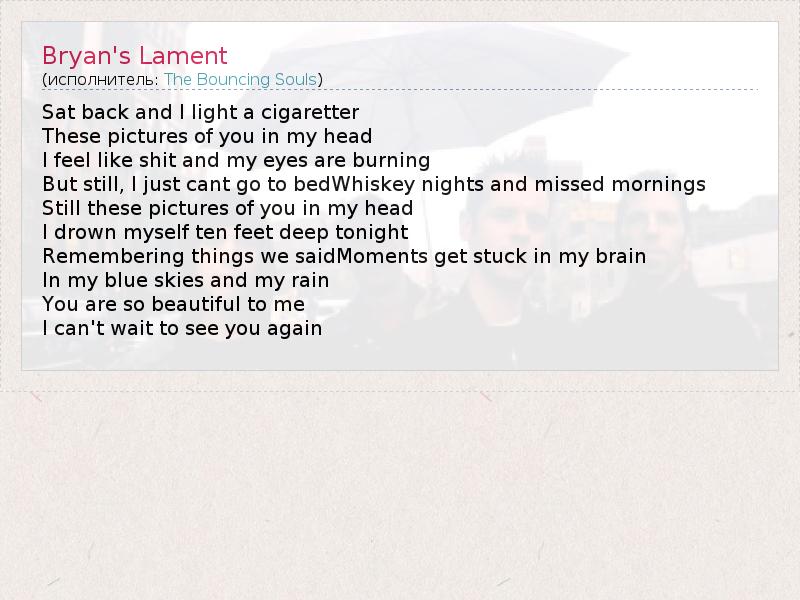 А как ты думаешь, о чем песня "Bryan's Lament" ?