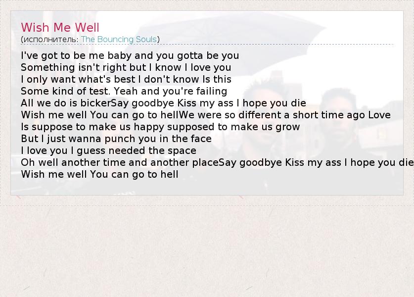 А как ты думаешь, о чем песня "Wish Me Well" ?