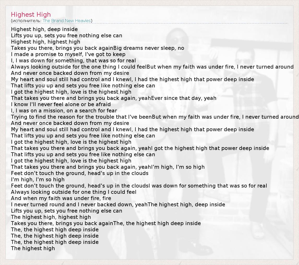 А как ты думаешь, о чем песня "Highest High" ?