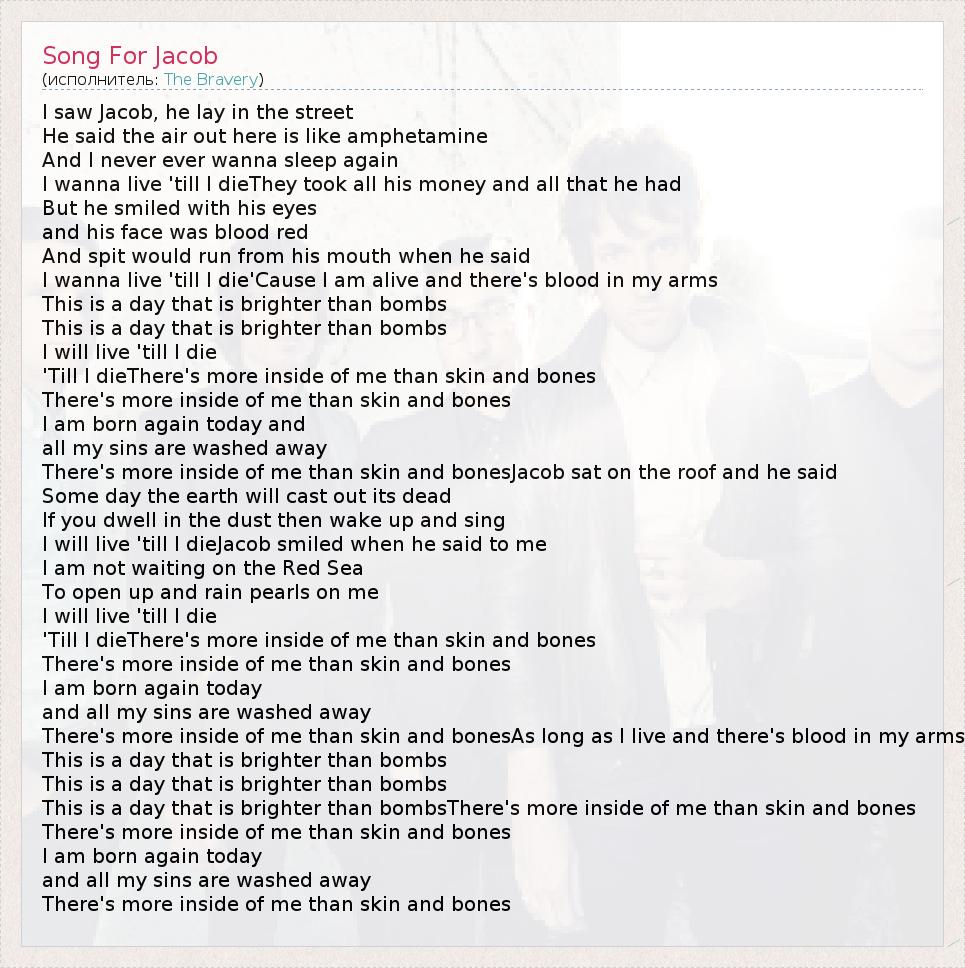 А как ты думаешь, о чем песня "Song For Jacob" ?