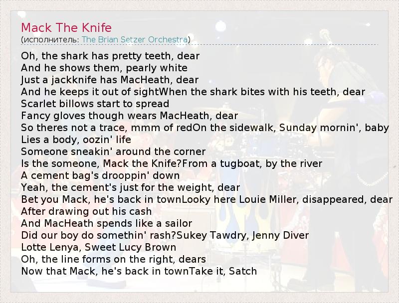 А как ты думаешь, о чем песня "Mack The Knife" ?