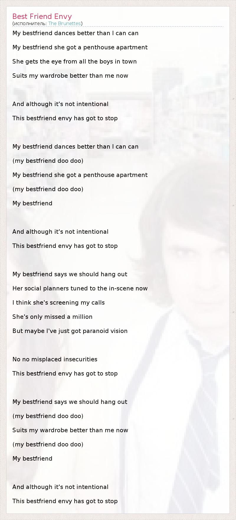 А как ты думаешь, о чем песня "Best Friend Envy" ?