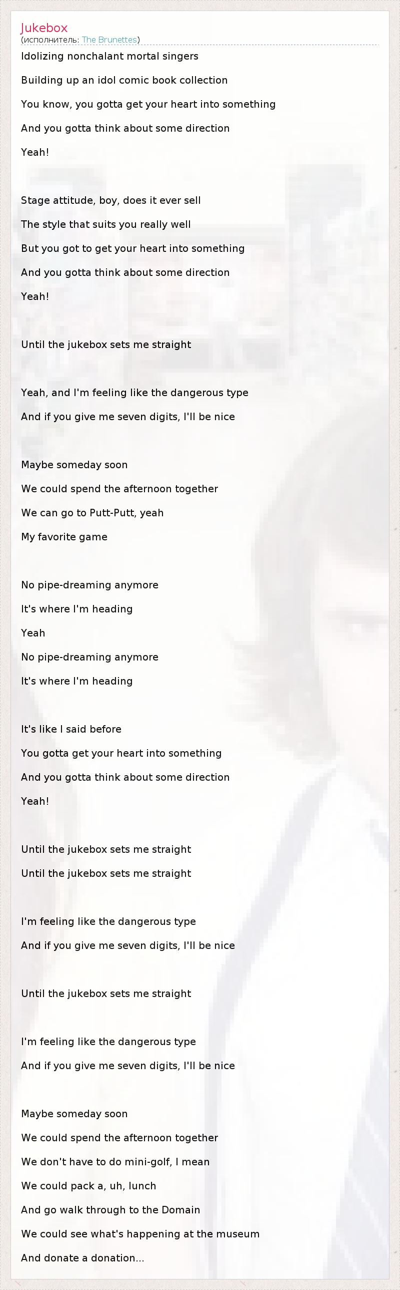 Это интересно:The Brunettes - инди - поп , twee- pop группа новой волны из Новой Зеландии. Образована в 1998 году. Состав: Джонатан Бри - вокалист и продюсер, Хизер Мэнсфилд -вокал , клавишные. Первый альбом вышел в 2002-м году. Хиты: "Mars loves venus", "red rollerscates", "loopy loopy love".