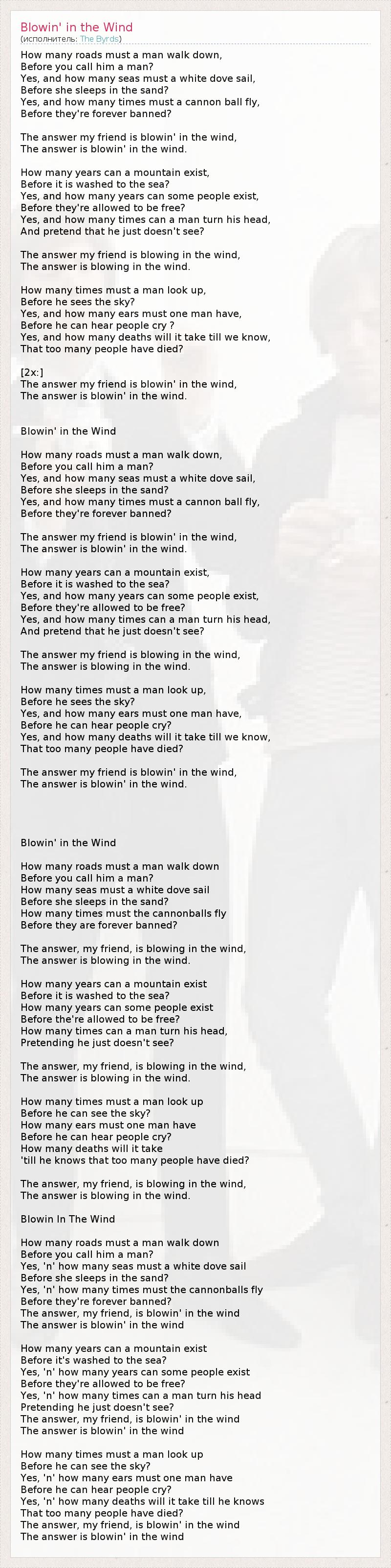 Ответ носит ветер* (перевод К В Ковалев из Москвы)