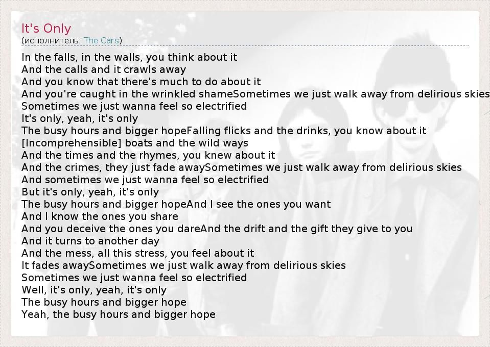 And the crimes, they just fade awaySometimes we just walk away from delirious skies