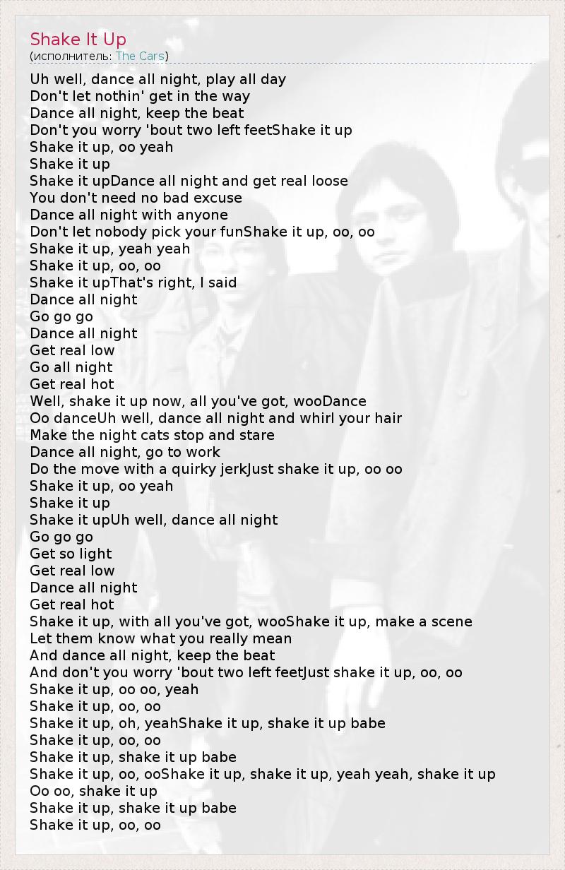Shake it up, oo, ooShake it up, shake it up, yeah yeah, shake it up