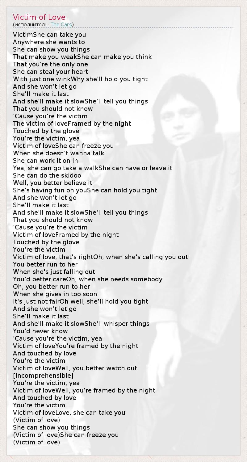 А как ты думаешь, о чем песня "Victim of Love" ?