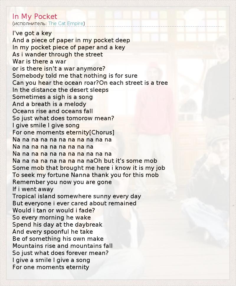 А как ты думаешь, о чем песня "In My Pocket" ?