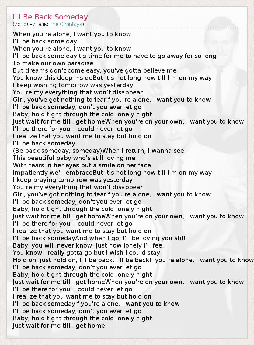 А как ты думаешь, о чем песня "I'll Be Back Someday" ?