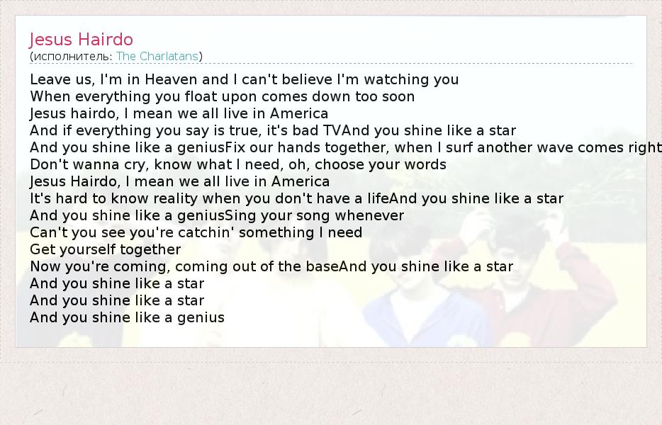 А как ты думаешь, о чем песня "Jesus Hairdo" ?