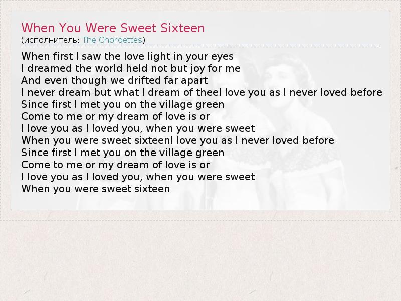 When you were sweet sixteenI love you as I never loved before