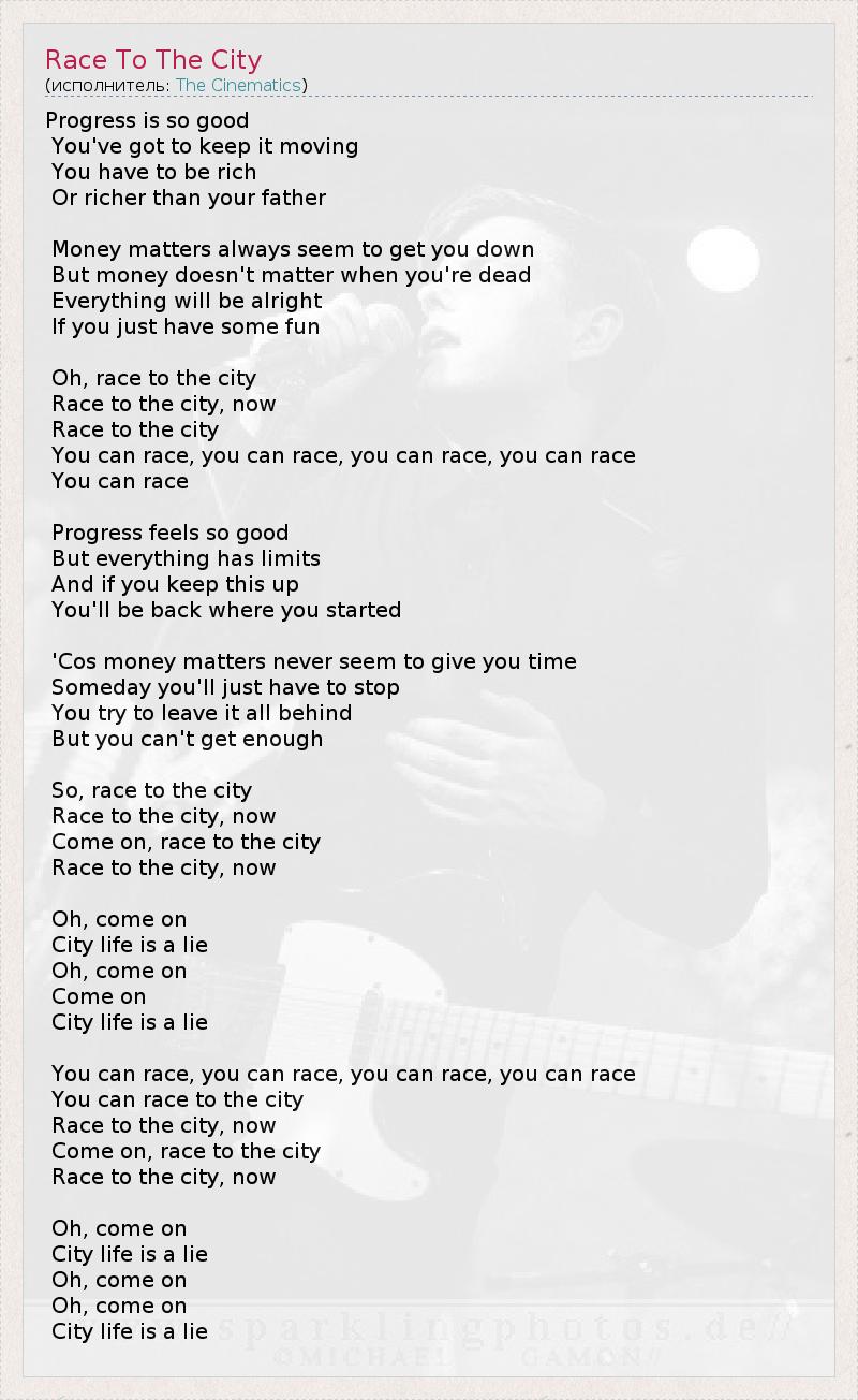 А как ты думаешь, о чем песня "Race To The City" ?