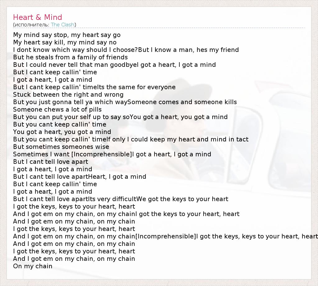 А как ты думаешь, о чем песня "Heart & Mind" ?