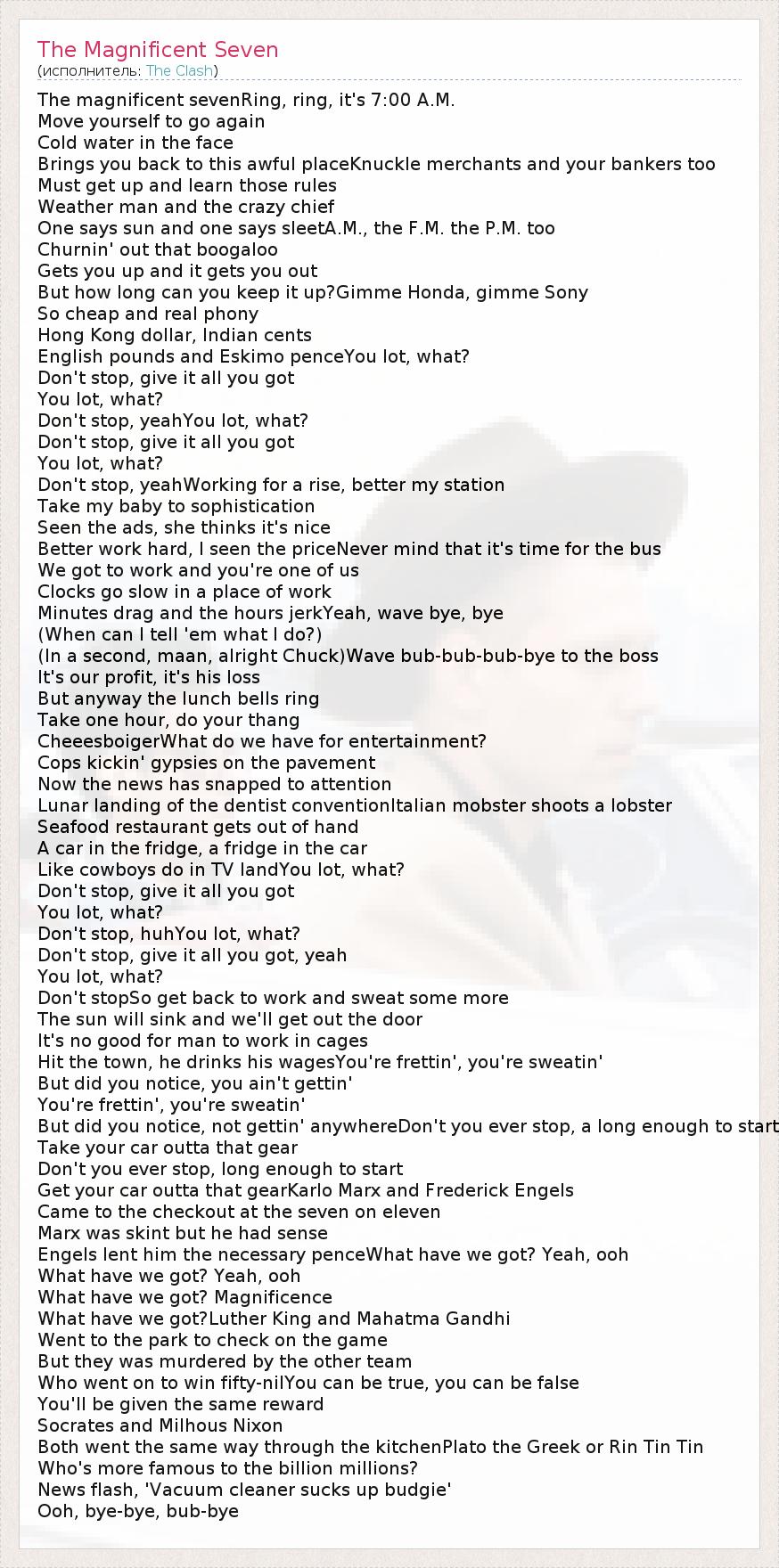 ГлавнаяИсполнителиThe ClashThe Magnificent Seven