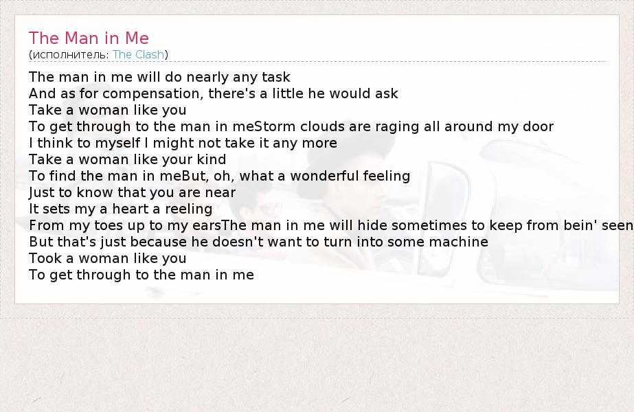 А как ты думаешь, о чем песня "The Man in Me" ?