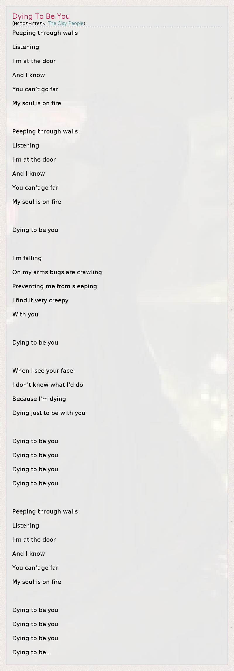 А как ты думаешь, о чем песня "Dying To Be You" ?
