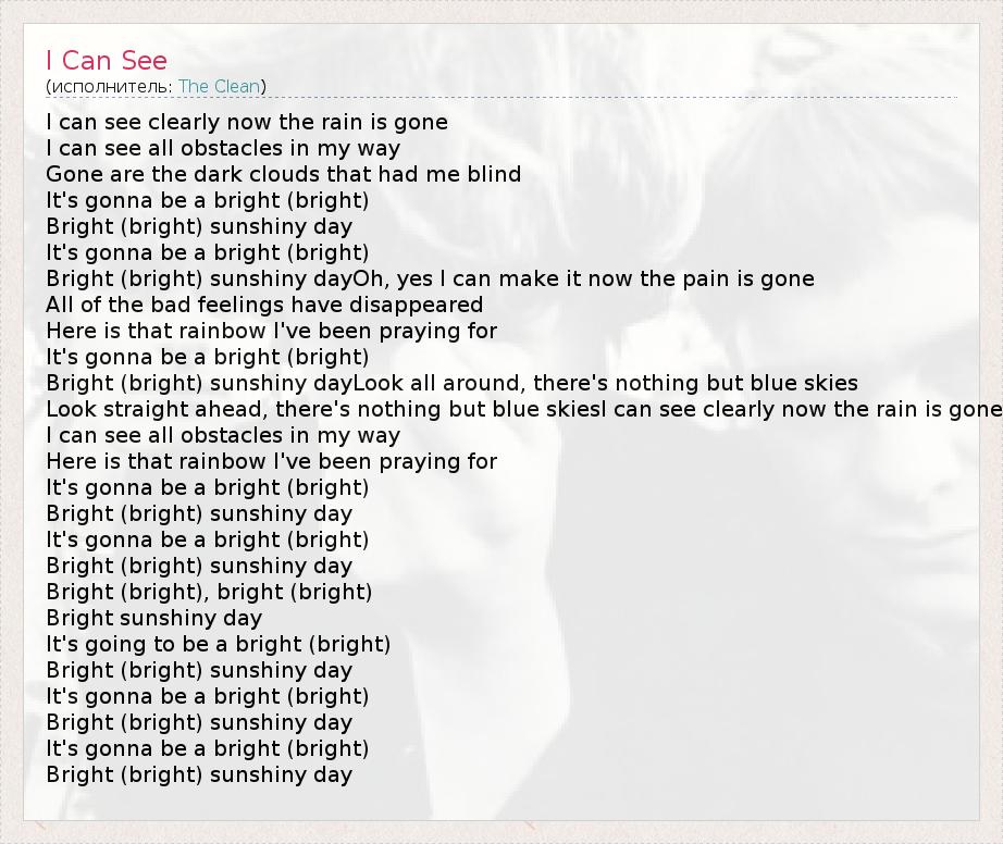 Look straight ahead, there's nothing but blue skiesI can see clearly now the rain is gone