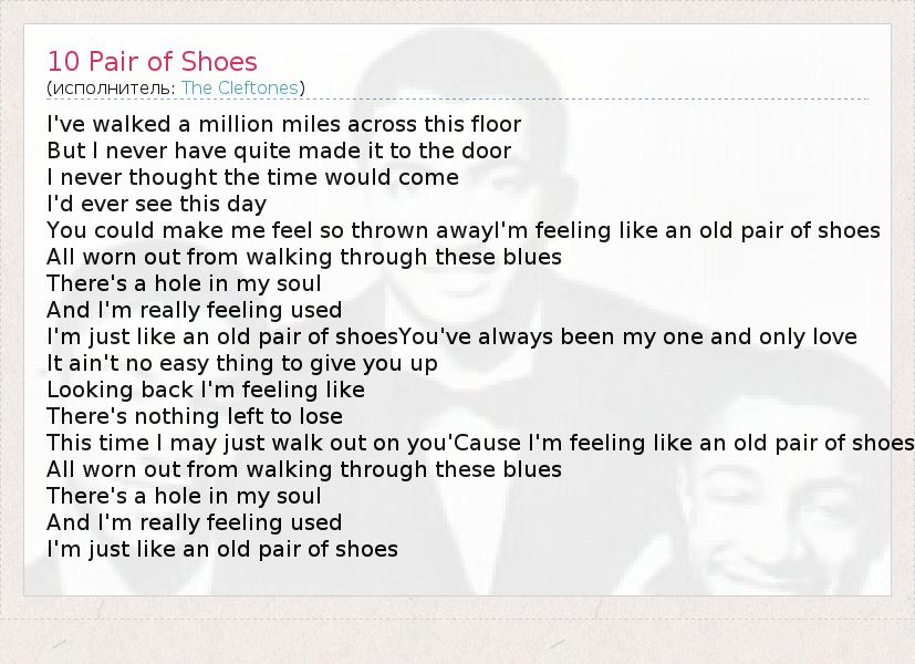 А как ты думаешь, о чем песня "10 Pair of Shoes" ?