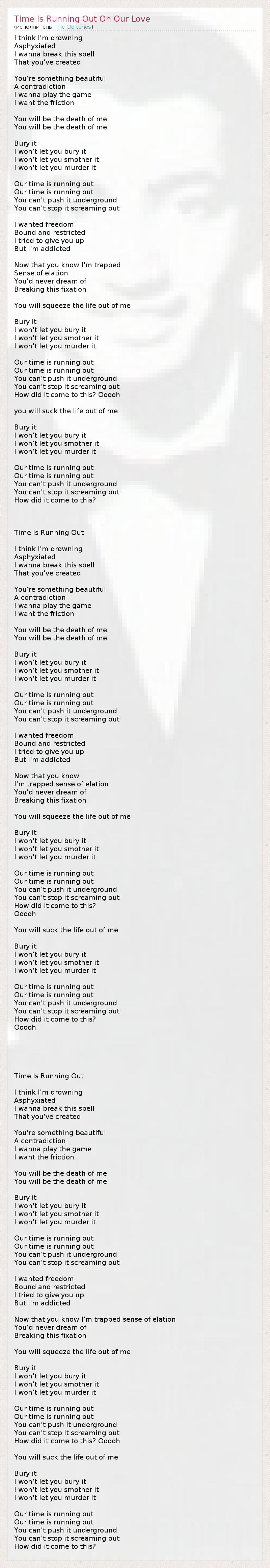 А как ты думаешь, о чем песня "Time Is Running Out On Our Love" ?
