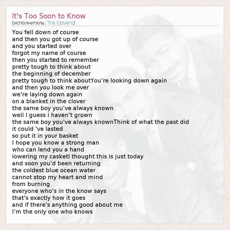 А как ты думаешь, о чем песня "It's Too Soon to Know" ?