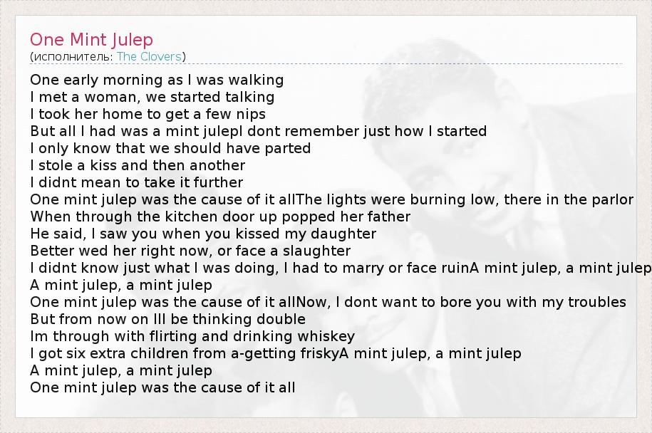 А как ты думаешь, о чем песня "One Mint Julep" ?