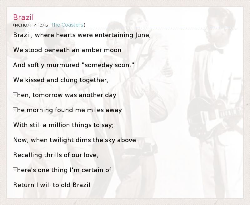 Это интересно:The Coasters — чернокожий вокальный коллектив из Лос-Анджелеса, пик популярности которого пришёлся на вторую половину 1950-х годов. От конкурентов вроде The Platters и The Drifters эту группу отличали юмористический подход к выступлениям и текстам песен. В 1987 г. The Coasters стали первым вокальным коллективом, удостоенным включения в Зал славы рок-н-ролла.Название группы намекает на их происхождение с западного... продолжение