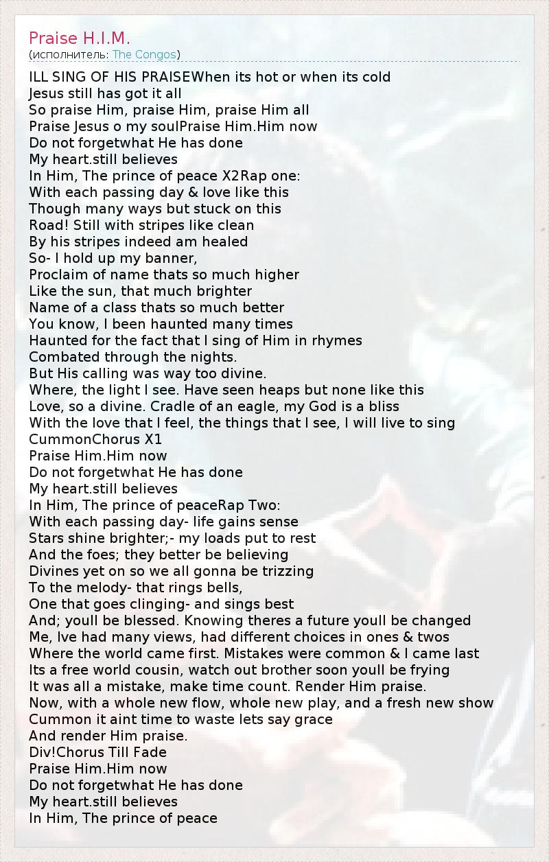 А как ты думаешь, о чем песня "Praise H.I.M." ?