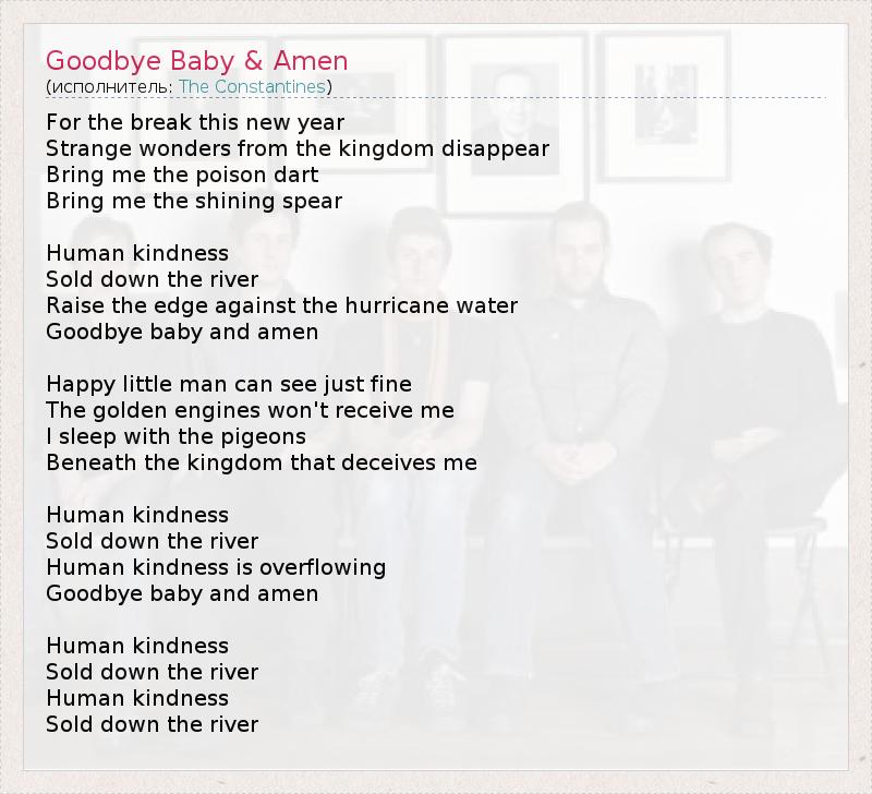А как ты думаешь, о чем песня "Goodbye Baby & Amen" ?
