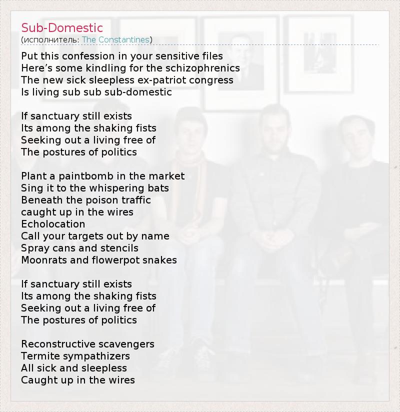 А как ты думаешь, о чем песня "Sub-Domestic" ?