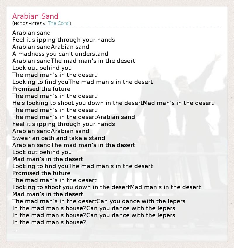 The mad man's in the desertArabian sand
