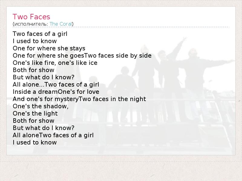 А как ты думаешь, о чем песня "Two Faces" ?