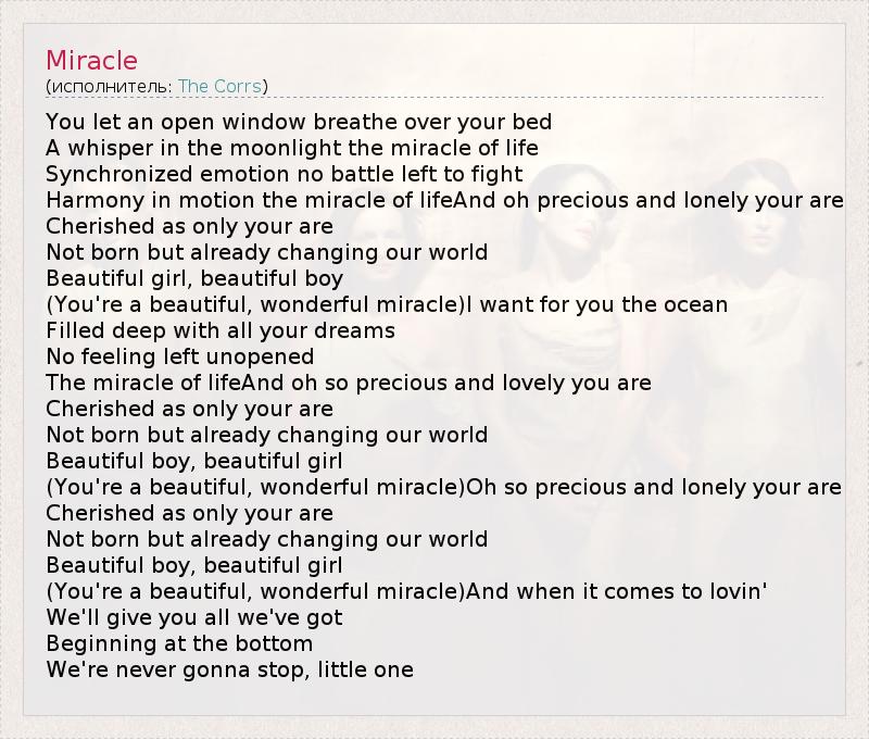 (You're a beautiful, wonderful miracle)Oh so precious and lonely your are