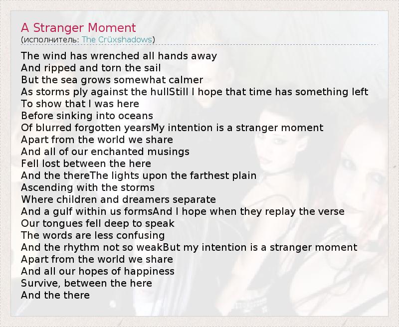 А как ты думаешь, о чем песня "A Stranger Moment" ?