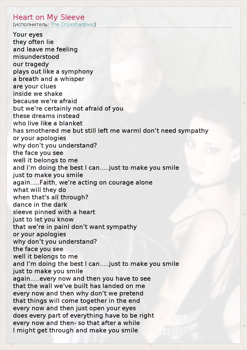 А как ты думаешь, о чем песня "Heart on My Sleeve" ?