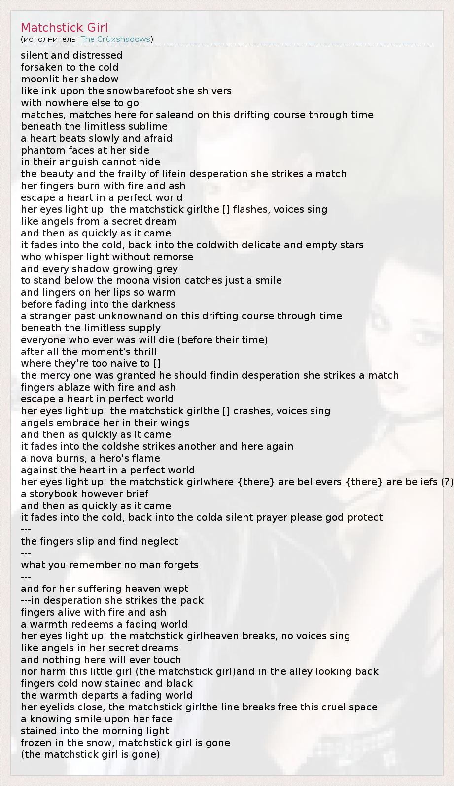 А как ты думаешь, о чем песня "Matchstick Girl" ?
