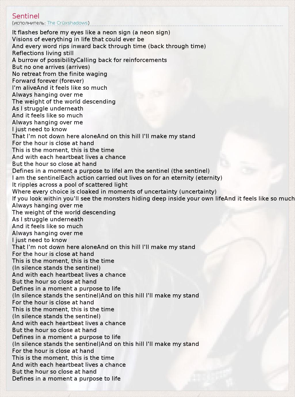 Defines in a moment a purpose to lifeI am the sentinel (the sentinel)