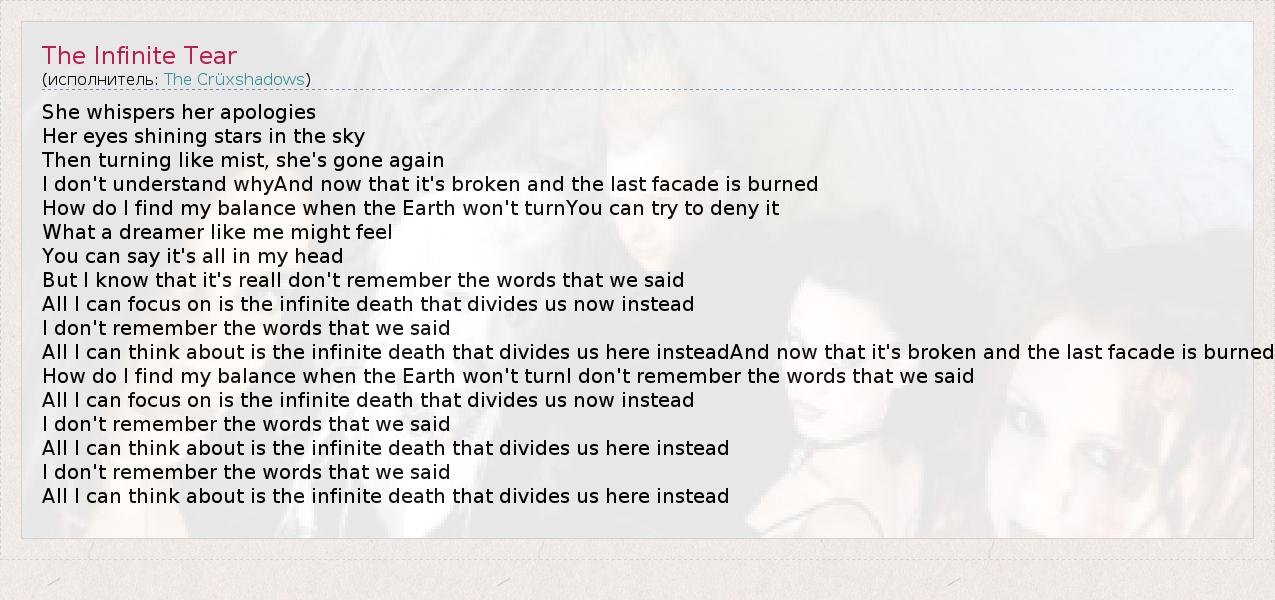 А как ты думаешь, о чем песня "The Infinite Tear" ?