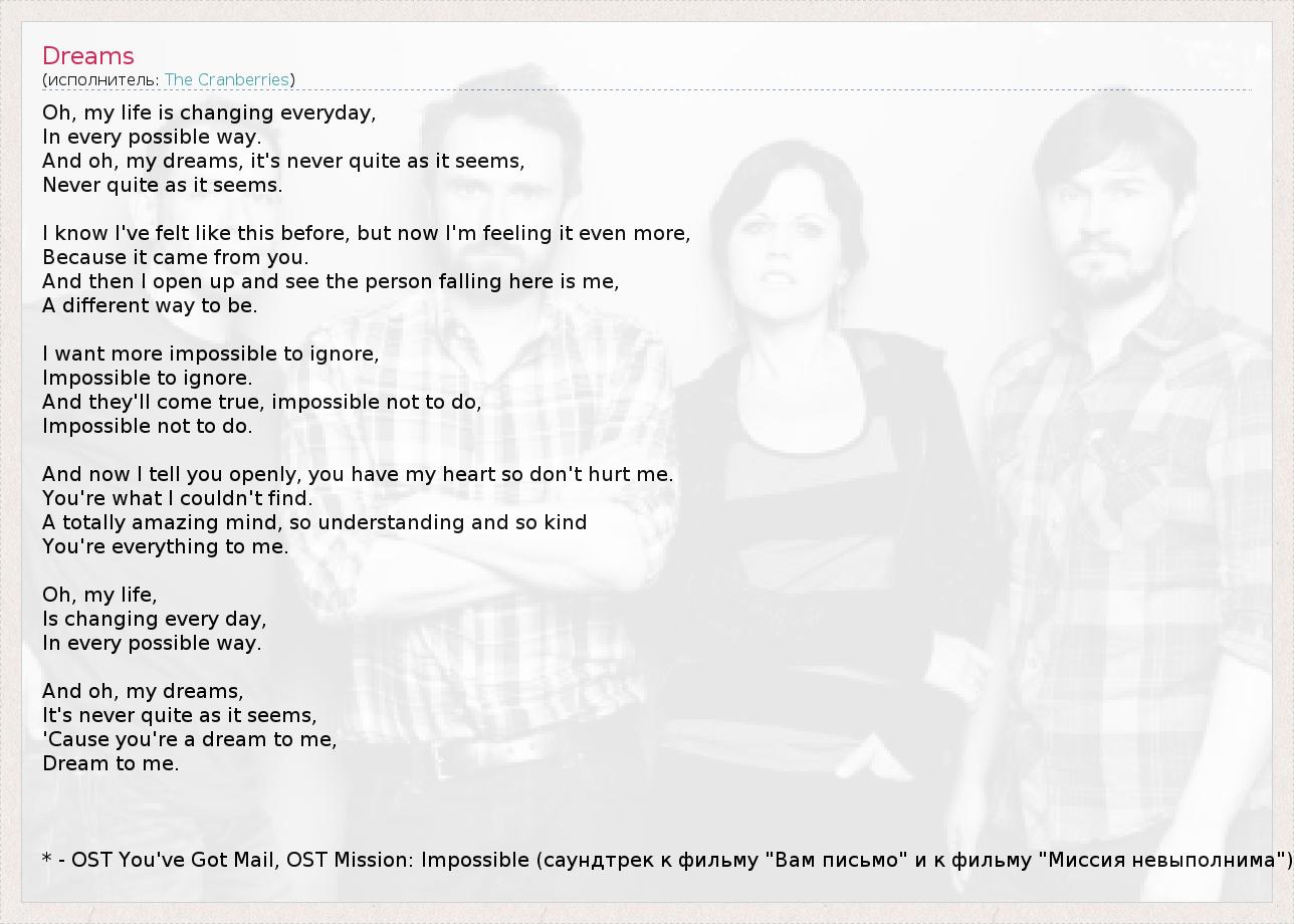 Dreams — Первый сингл c дебютного альбома «Everybody Else Is Doing It So Why Can’t We?» ирландской рок-группы The Cranberries, вышедший в октябре 1992 года. На песню было снято три версии клипов, причём каждая — с существенными изменениями.