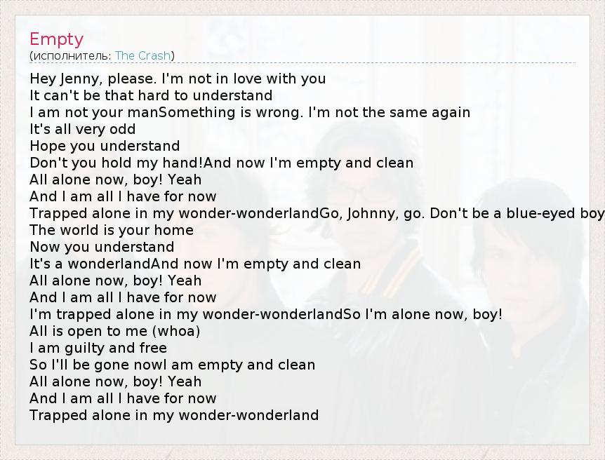 I'm trapped alone in my wonder-wonderlandSo I'm alone now, boy!