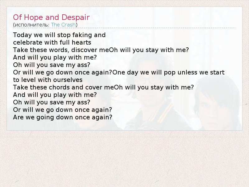 А как ты думаешь, о чем песня "Of Hope and Despair" ?